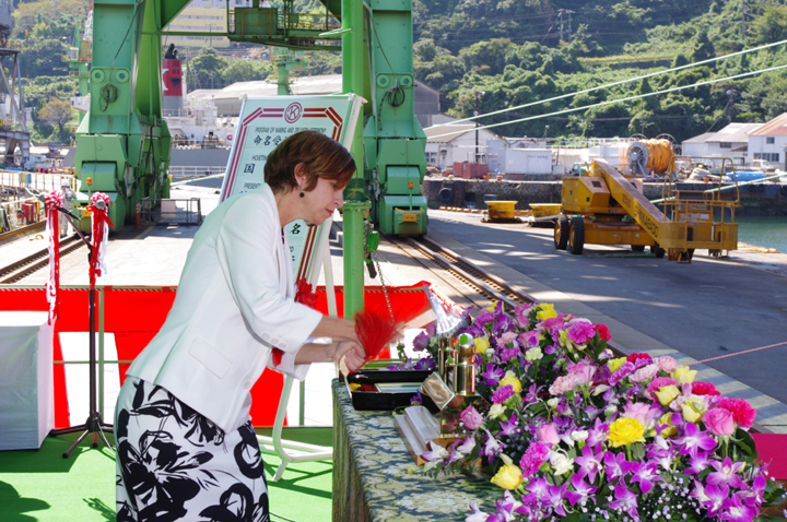 REGINA – Saskatchewan’s Premier Brad Wall is currently in Asia to boost business, and in Japan Mrs. Wall christened a new ship that will carry Saskatchewan potash all over the world.