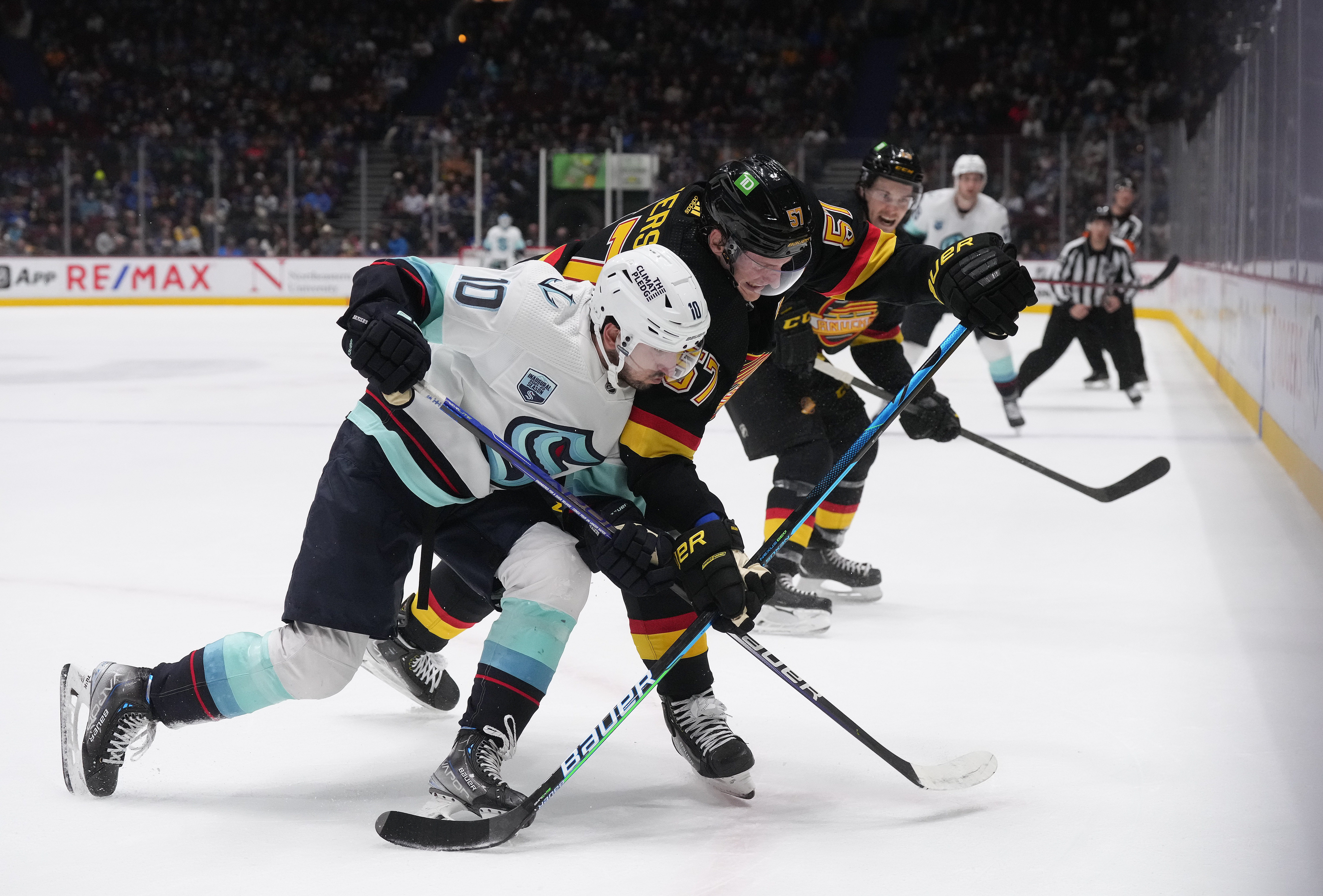 Vancouver outplayed the visitors mightily through the first, with the Kraken going the first 11 minutes without a shot on goal despite a two-minute power play.