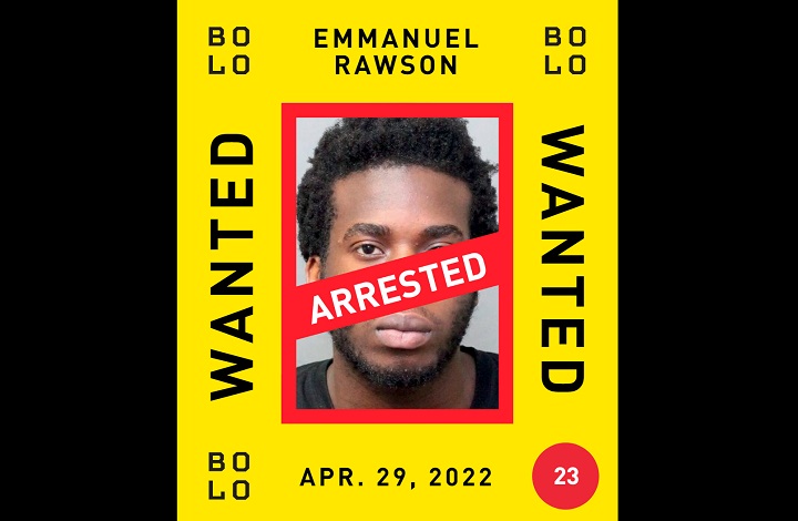 One suspect, identified as 22-year-old Toronto resident Emmanuel Rawson, remained outstanding.