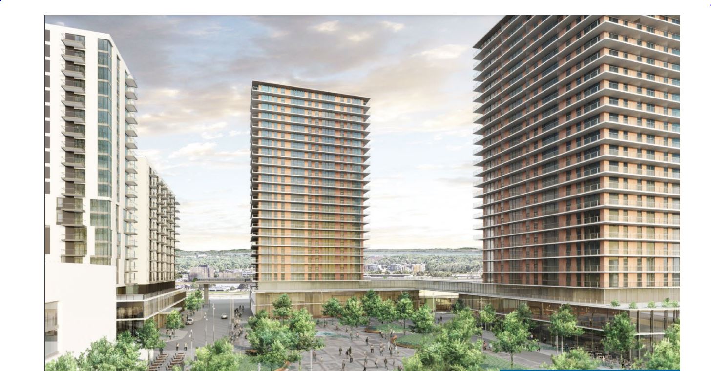 The land is owned by Cadillac Fairview and is zoned for mixed residential and commercial use.