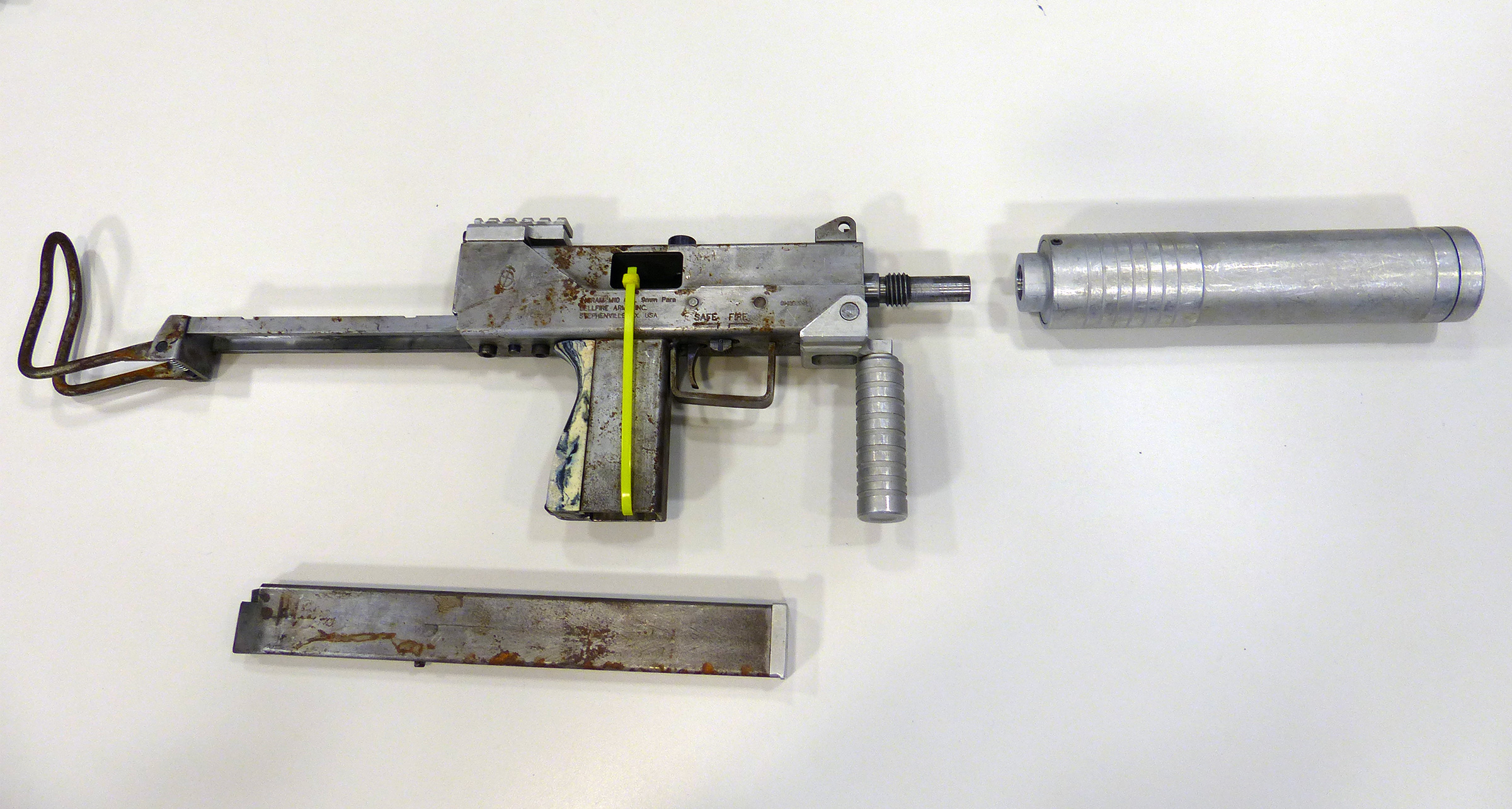 The MAC-10 was equipped with a silencer and police also reported finding prohibited extra-capacity magazines.