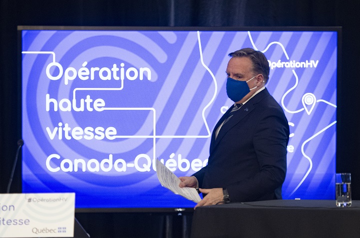 Premier François Legault says high-speed internet is essential because of the rise in remote work and the need to develop the regions outside big cities.