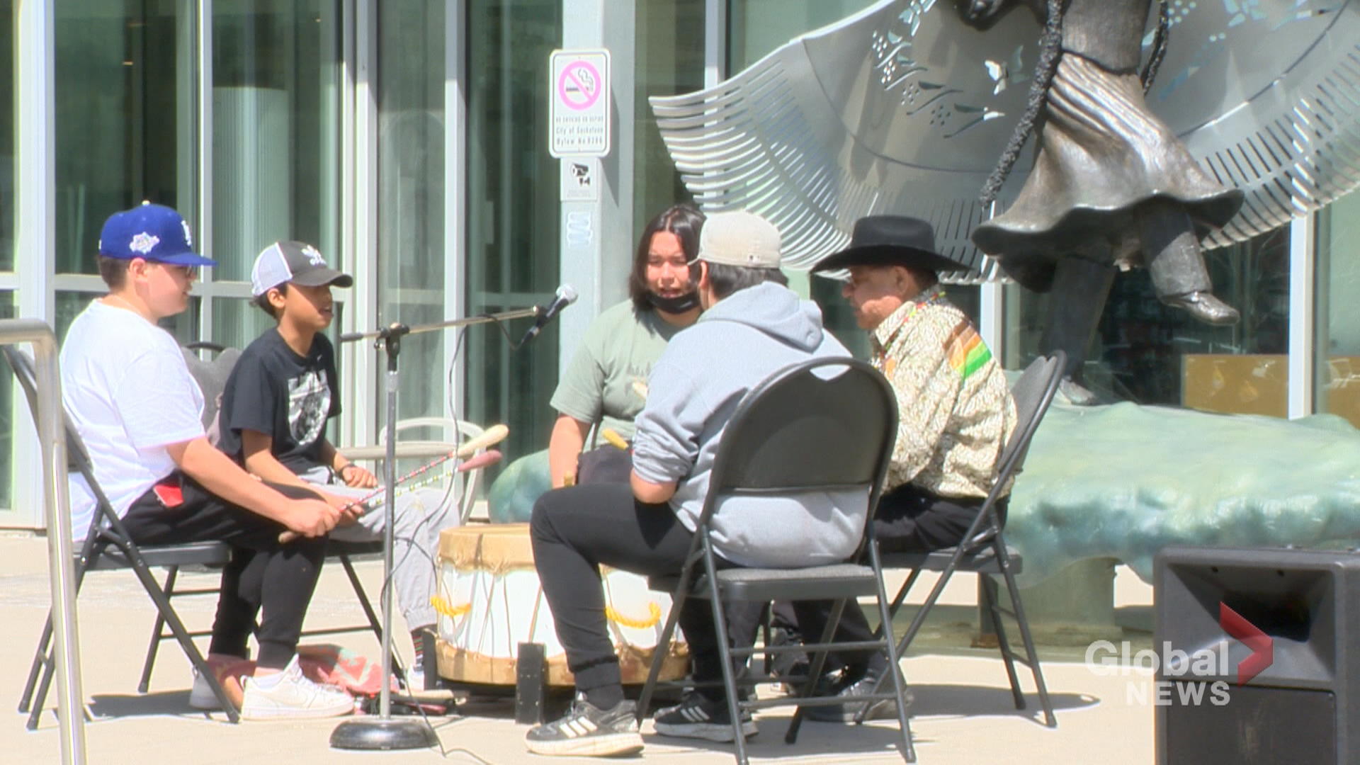 Part of a coordinated youth effort across the country, students from 10 different Grade 8 classes came together for speeches, music and dancing before marching to Saskatoon City Hall.