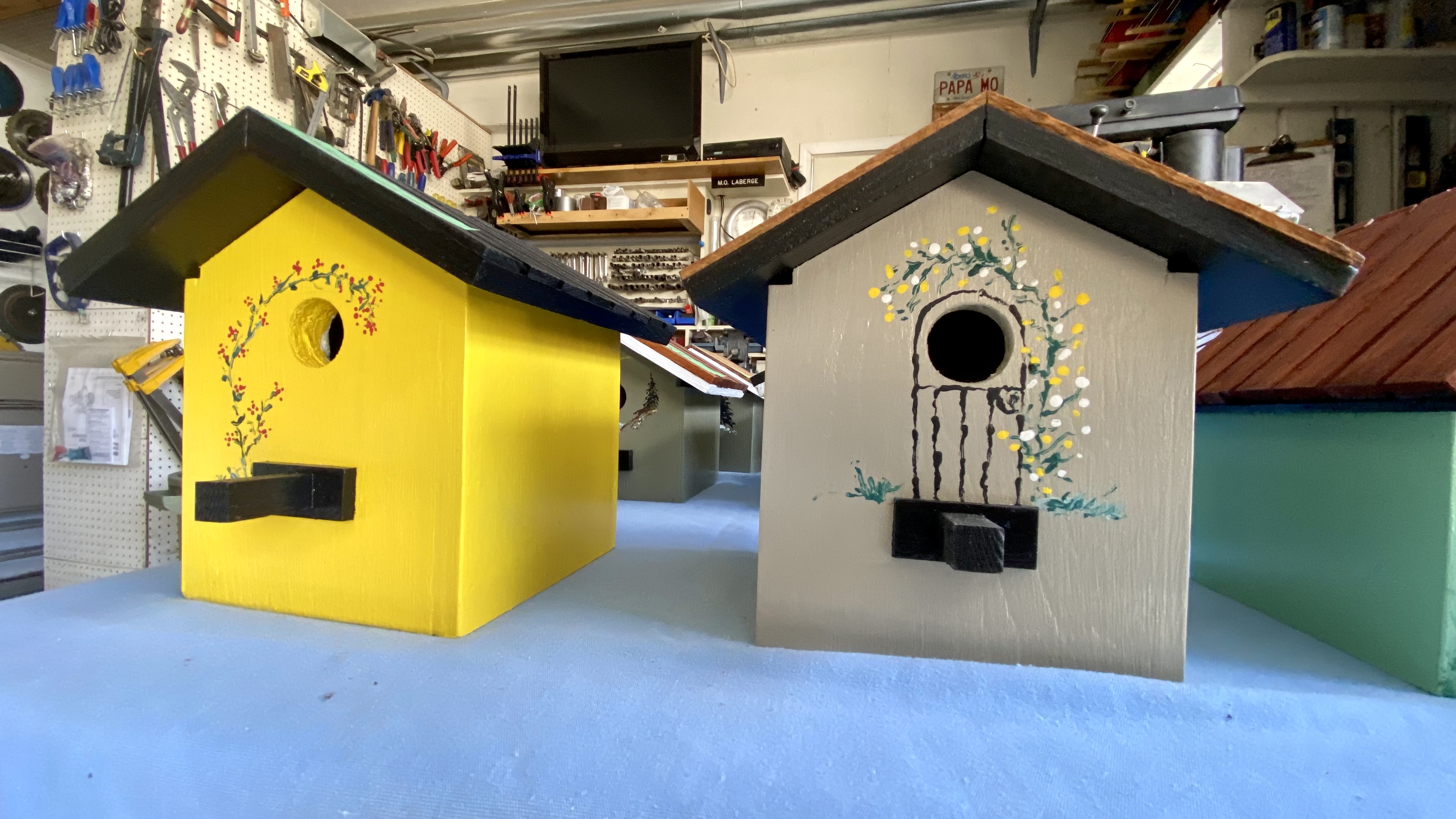 Over the past year, the birdhouse hobby picked up even more steam. He worked in the garage six days per week, six hours per day.