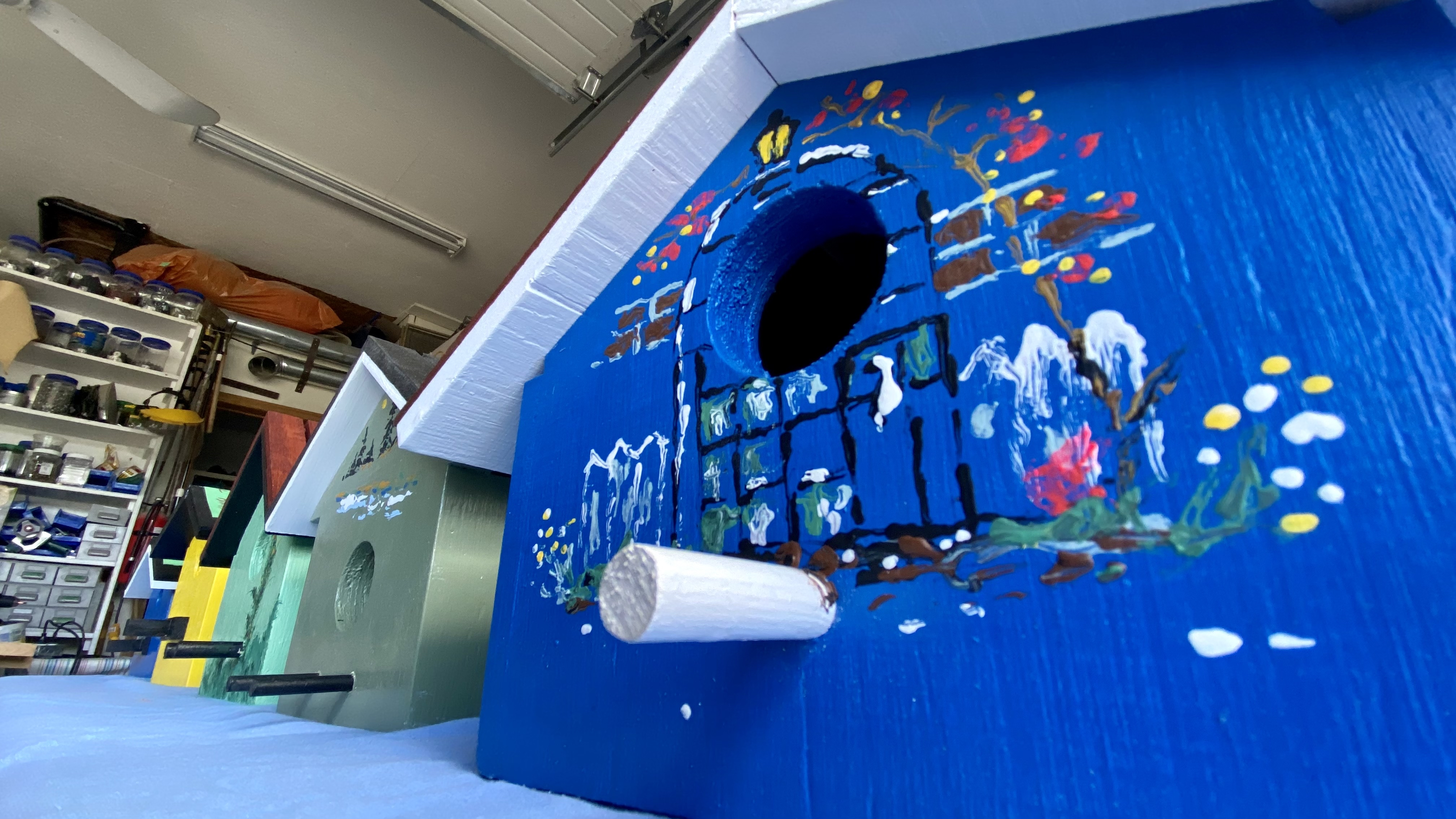 Neighbours and local companies got involved, designing artwork for the birdhouses and donating wood and supplies.
