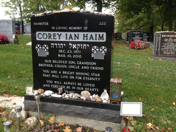 The late actor’s gravestone, which includes his nickname “Haimster” in the upper left corner, is engraved with: “You are a bright shining star that will live on for eternity. You will always be loved and forever be in our hearts. Peace.”