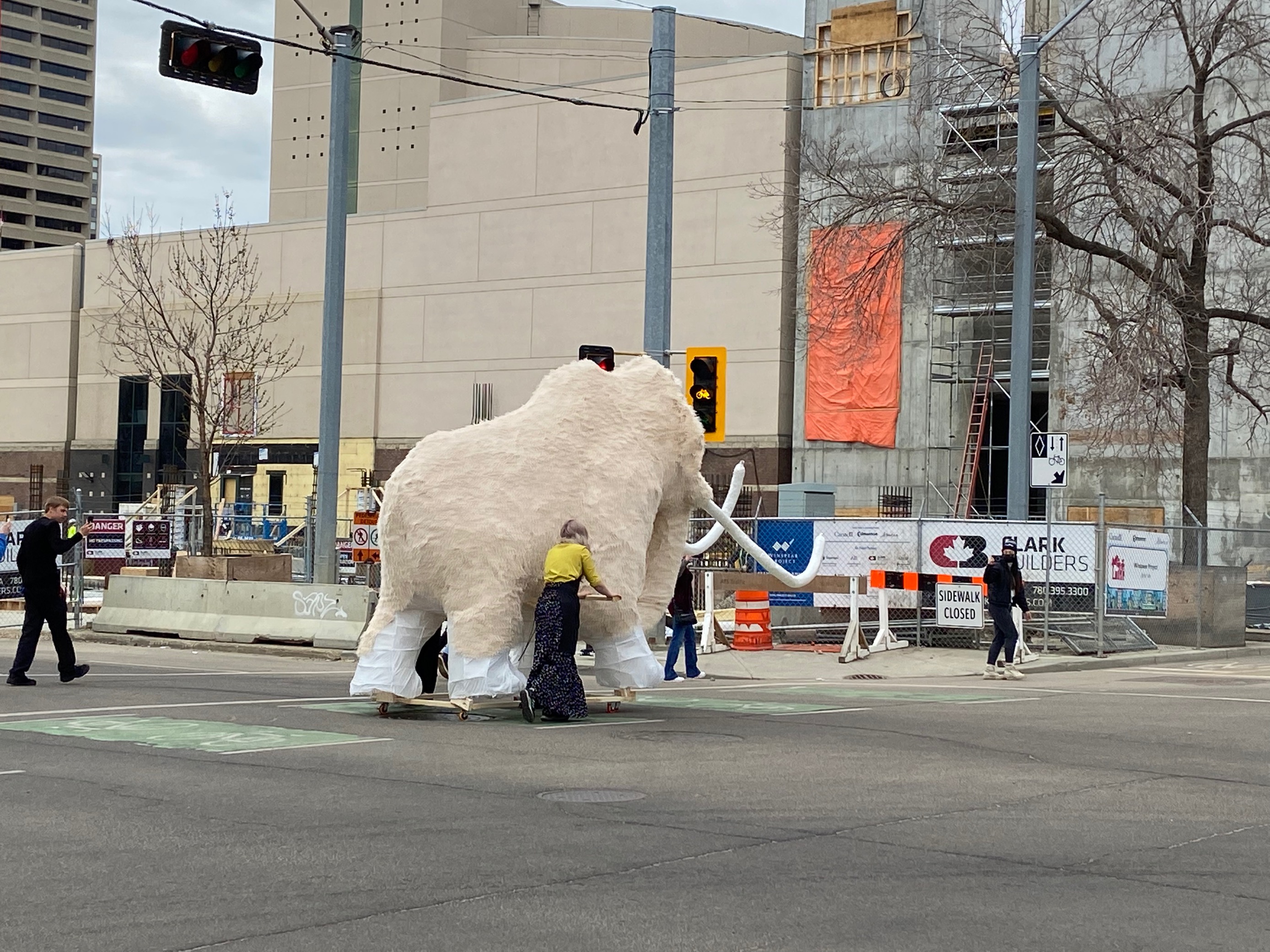 Did you see a woolly mammoth rolling around downtown Edmonton on Monday morning? No, your eyes were not playing tricks on you. It actually happened.