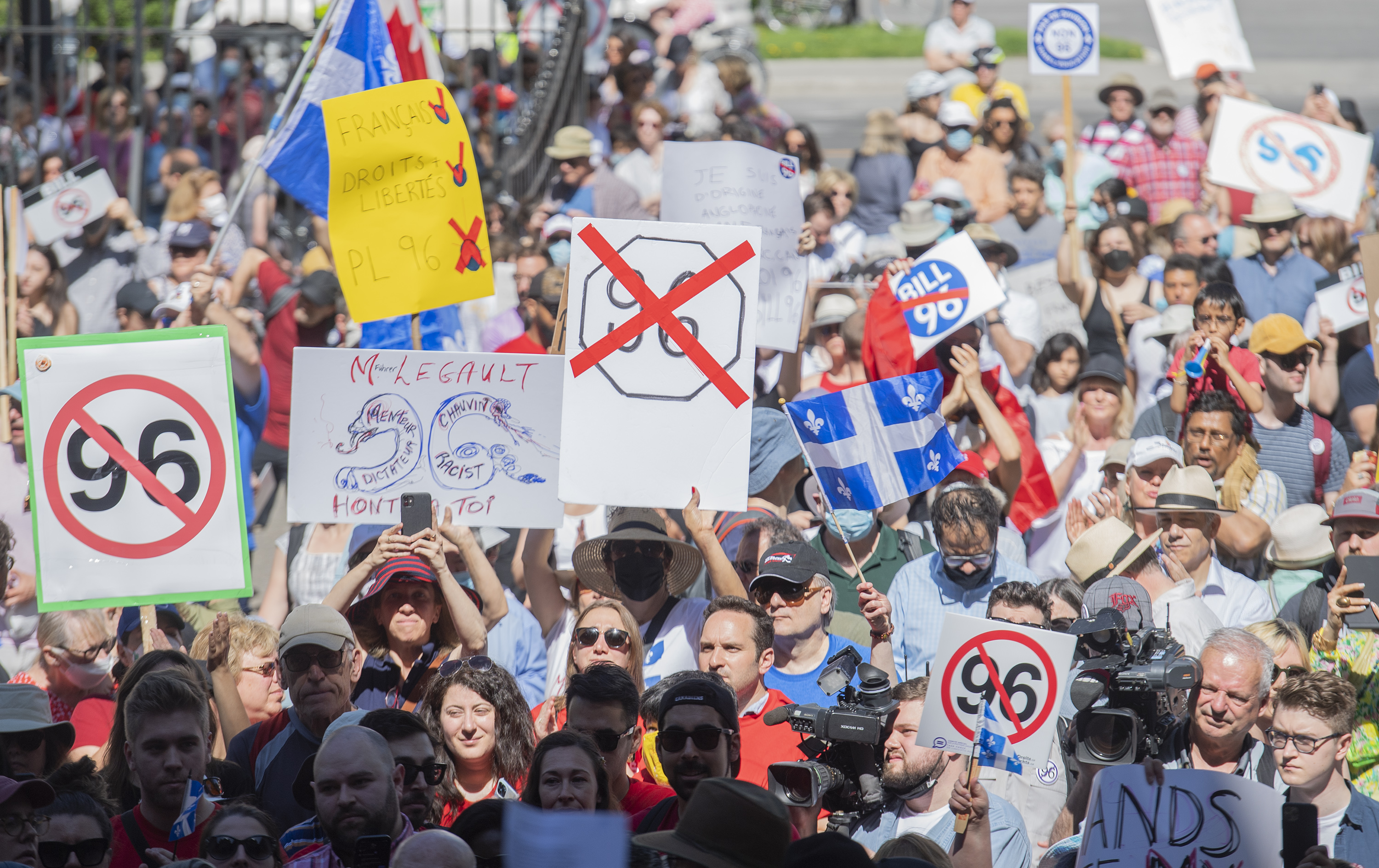 A protest against Quebec’s proposed overhaul of its language law drew a large crowd in Montreal on Saturday. The government says Bill 96 is a moderate reform that will improve protection for French while preserving English services, but critics say the bill will limit access to health care and justice, cost college teachers their jobs and increase red tape for small businesses.