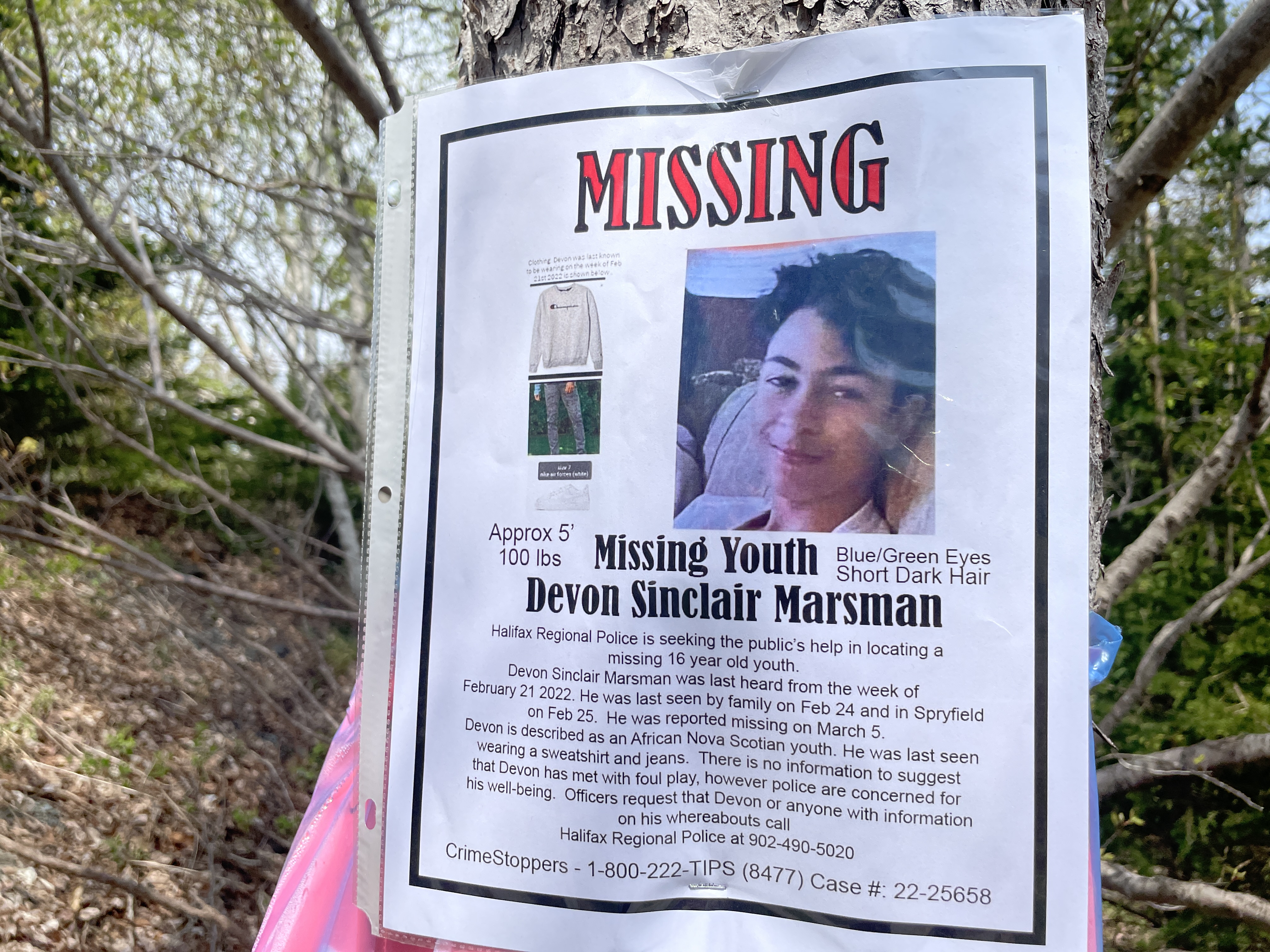 Family, friends and community members spent Saturday searching an area of Spryfield, N.S., for 16-year-old Devon Sinclair Marsman, three months after his disappearance.