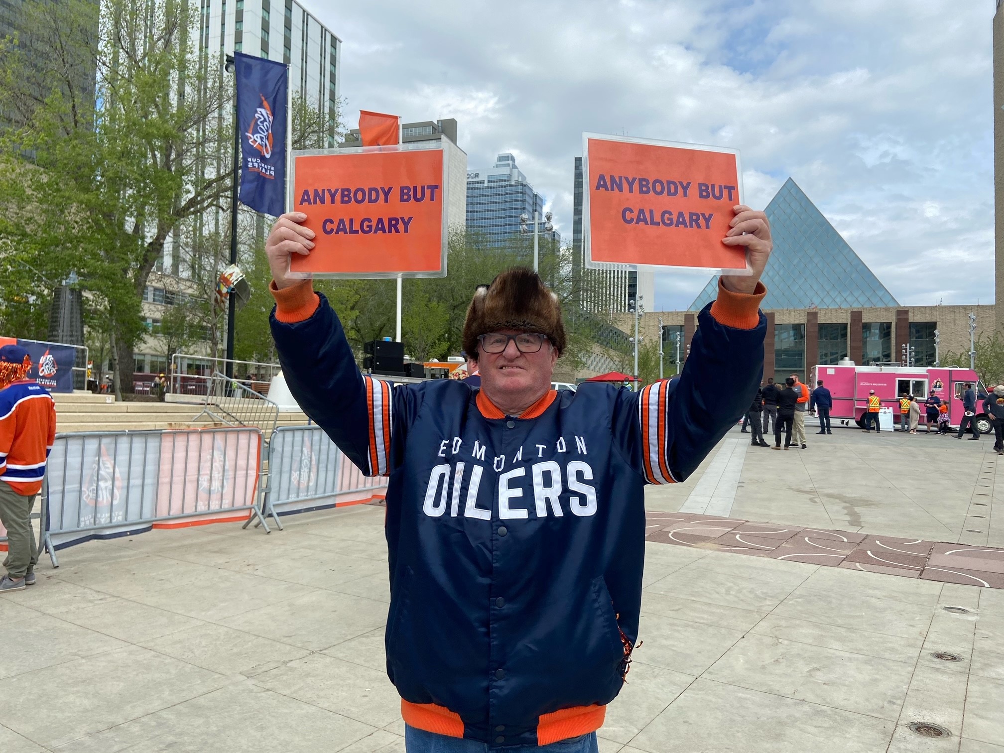 A sea of orange and blue took over Churchill Square Tuesday afternoon as the city held an Edmonton Oilers community rally in advance of the Battle of Alberta Game 4.