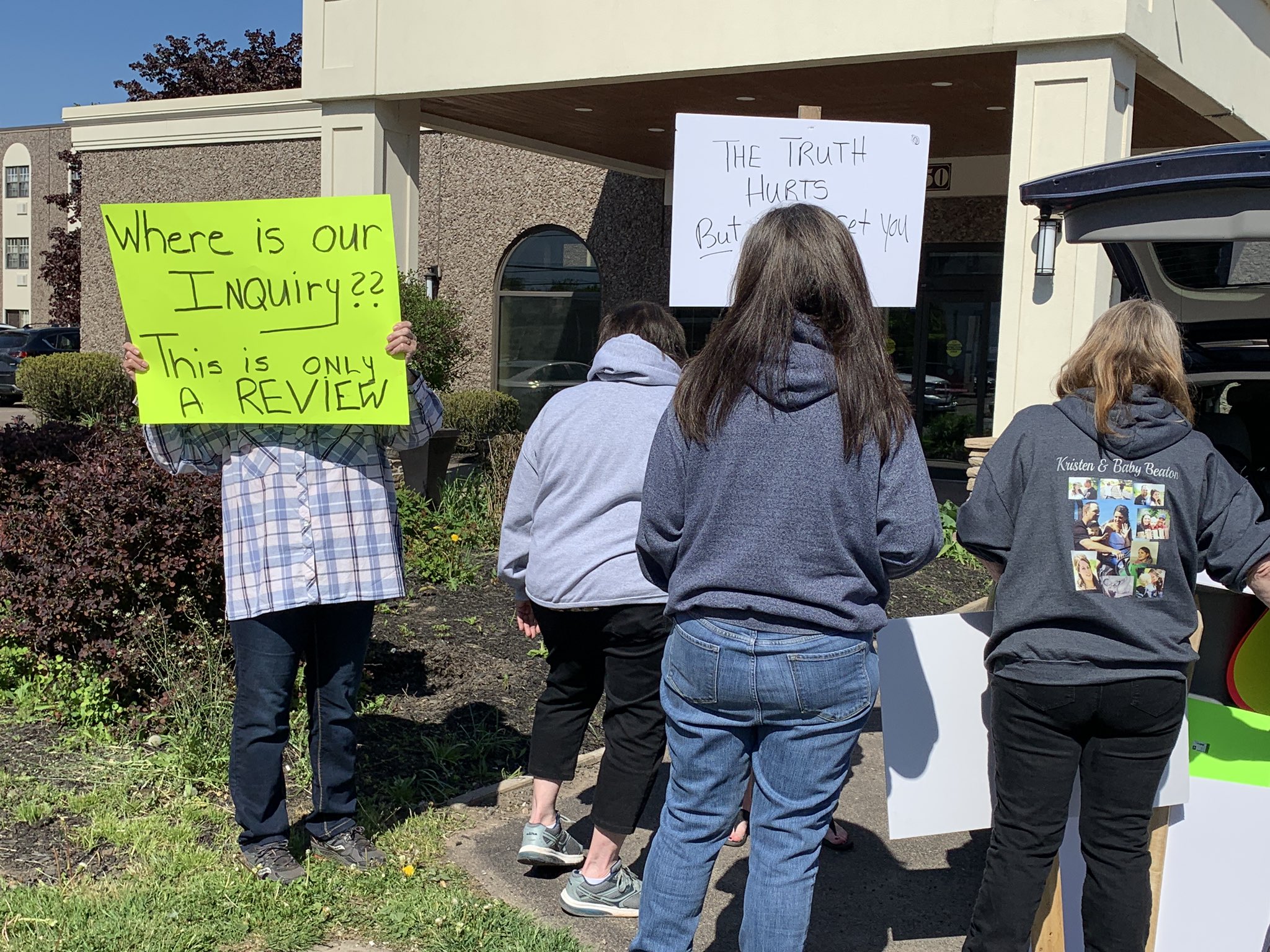 Instead, the family members were just outside, joined by supporters protesting what they see as a weak public inquiry into the rampage that stole the lives of 22 people during the weekend of April 18 and 19, 2020.