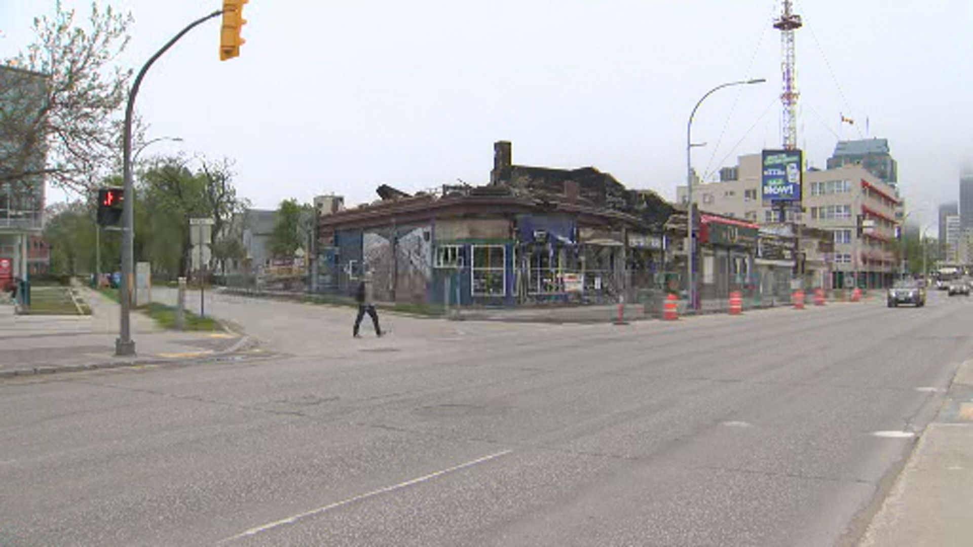 The Kirkland Block, a two-storey building at the corner of Langside Street and Portage Avenue, was razed by fire Feb. 2.