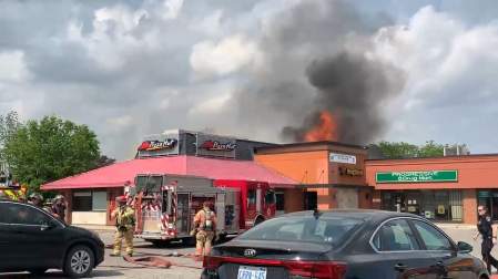 As of the late afternoon, Mosburger said fire crews were working to cut the fire off from entering any neighbouring units in the plaza, occupied by a drug store, UPS store and a payday loan business. The rear of the Pizza Hut also backs onto a separate plaza located at 1332 Huron St.