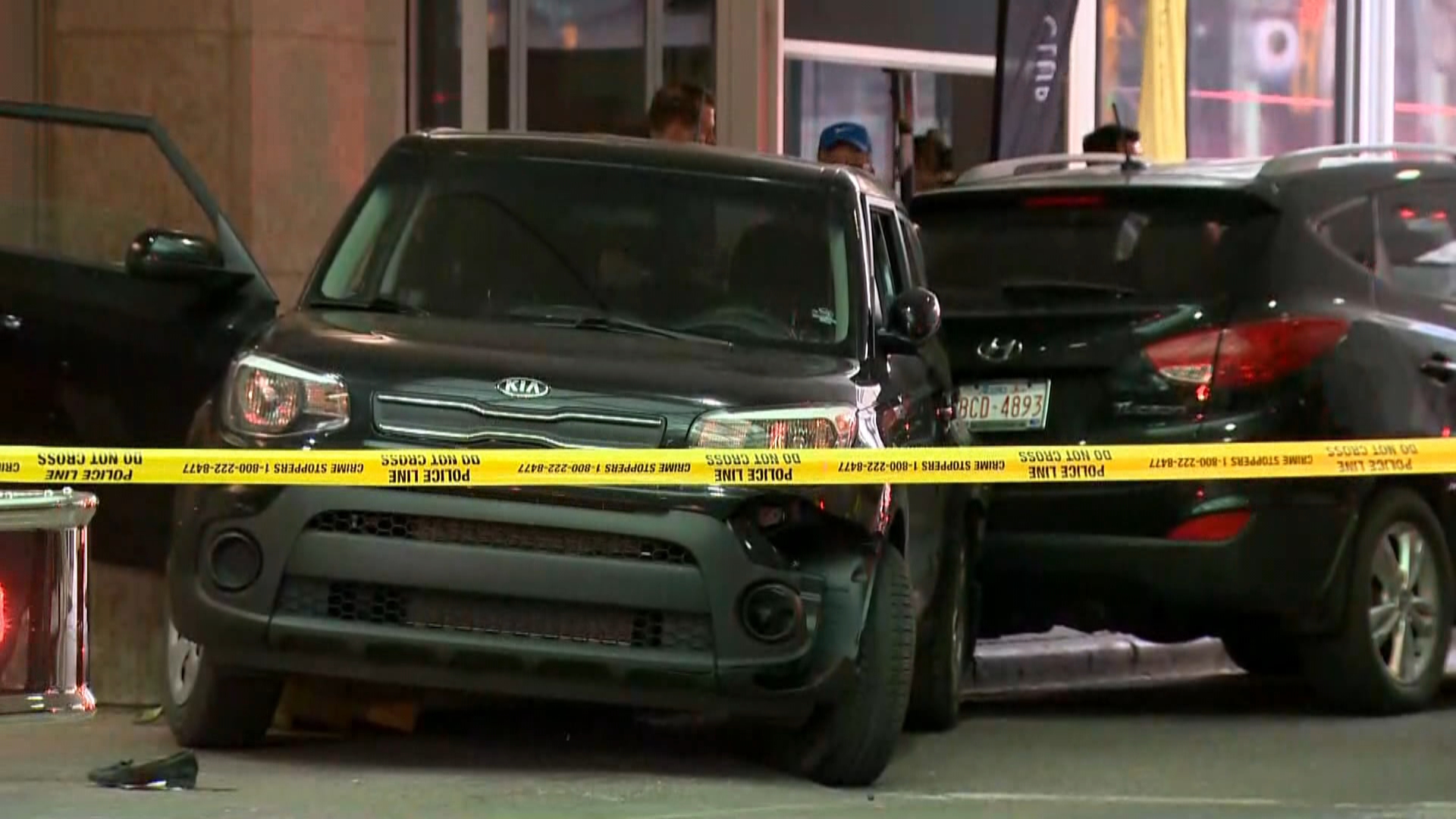 Two people were taken to hospital after a collision involving a pedestrian and a vehicle in Calgary’s downtown Tuesday afternoon.