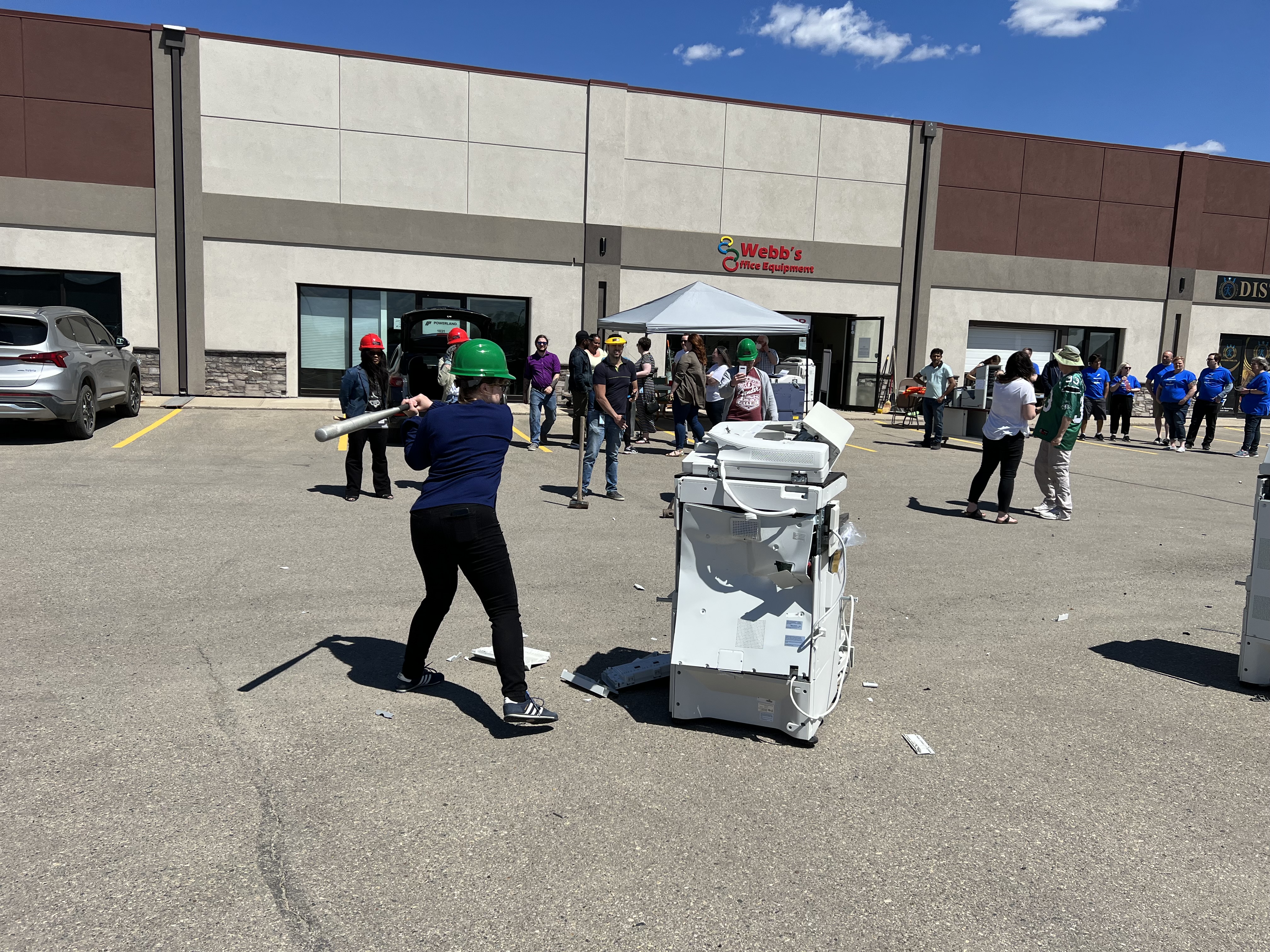 It was a scene straight out of Office Space at Webb’s Office Equipment as they held their inaugural fundraiser for Regina’s Carmichael Outreach.