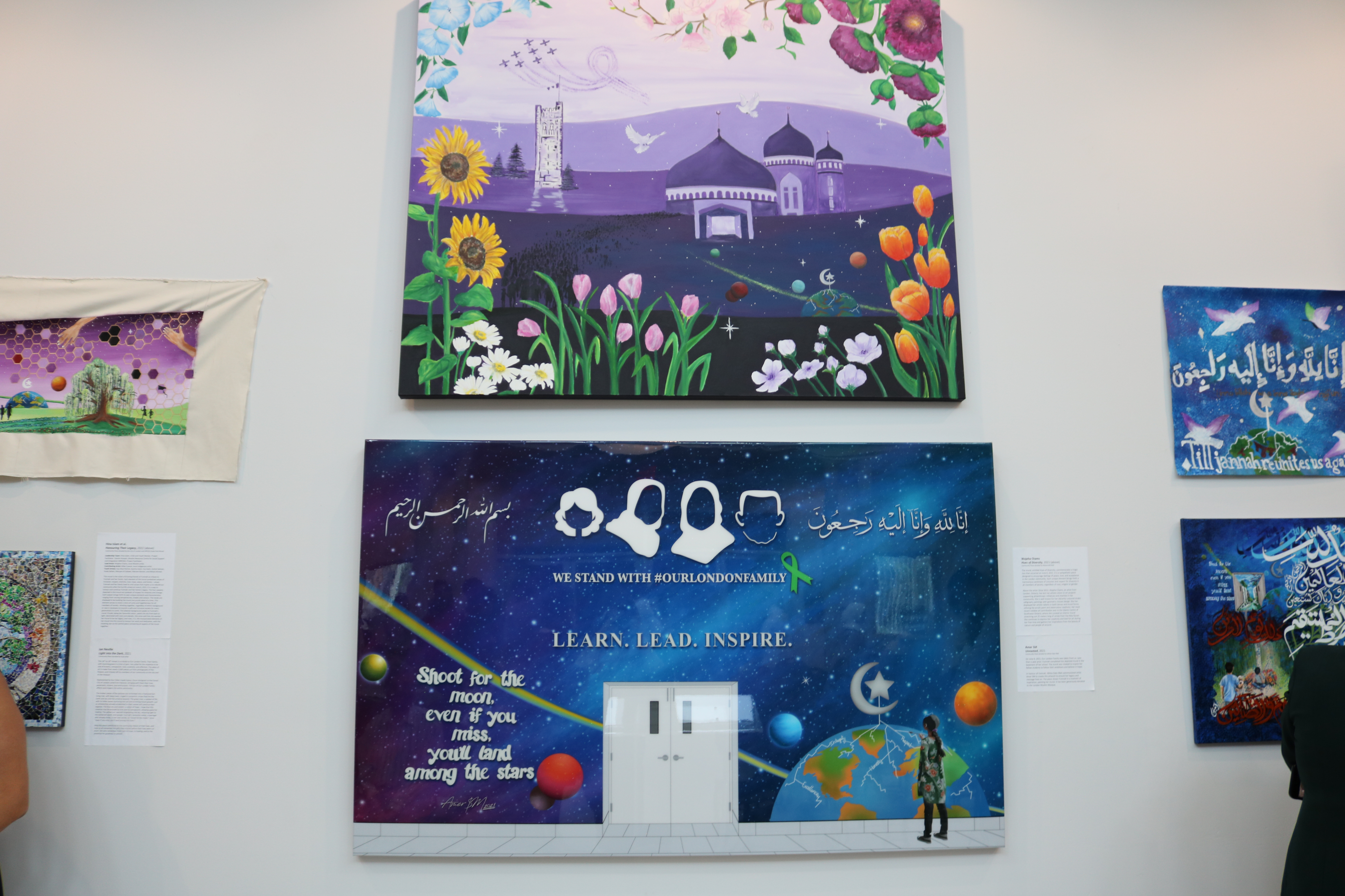 The centrepiece of the art exhibit is a mural painted on the basement wall of the Mosque by Yumna when she was a student at the London Islamic School in 2020.