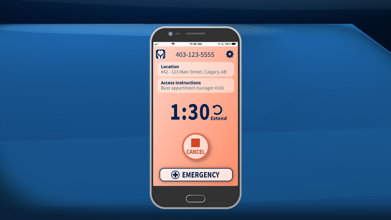 After the timer goes off, an alert requiring the user’s interaction sounds. If the user doesn’t shut off the alert, emergency services are called to respond to the user’s location.