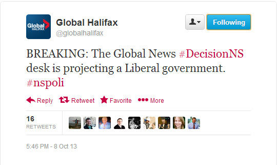 Above: Social media is buzzing with reaction to the surprising Liberal showing in the Nova Scotia provincial election