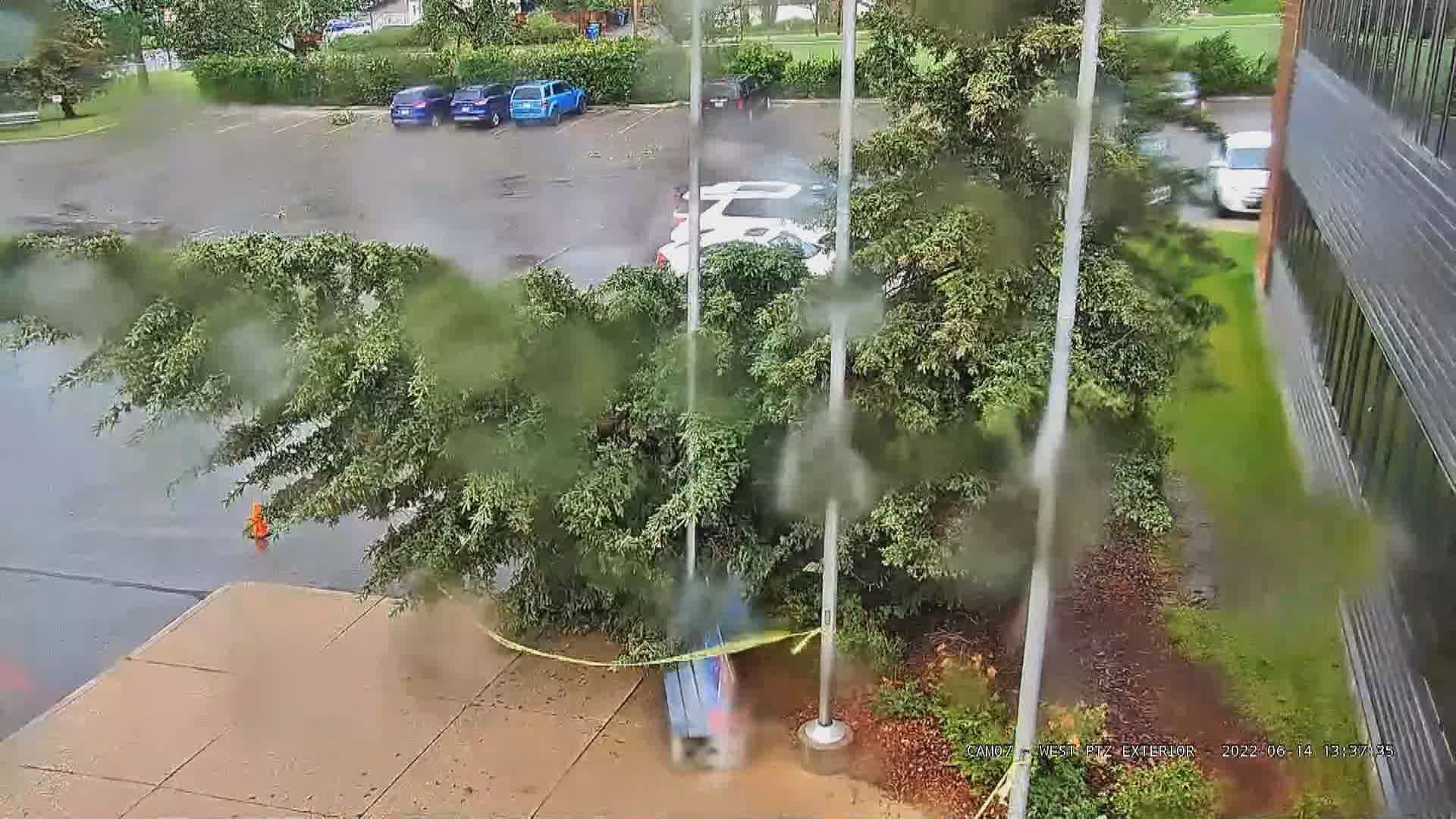 “Damage to buildings, such as to roof shingles and windows, may occur. High winds may toss loose objects or cause tree branches to break.”