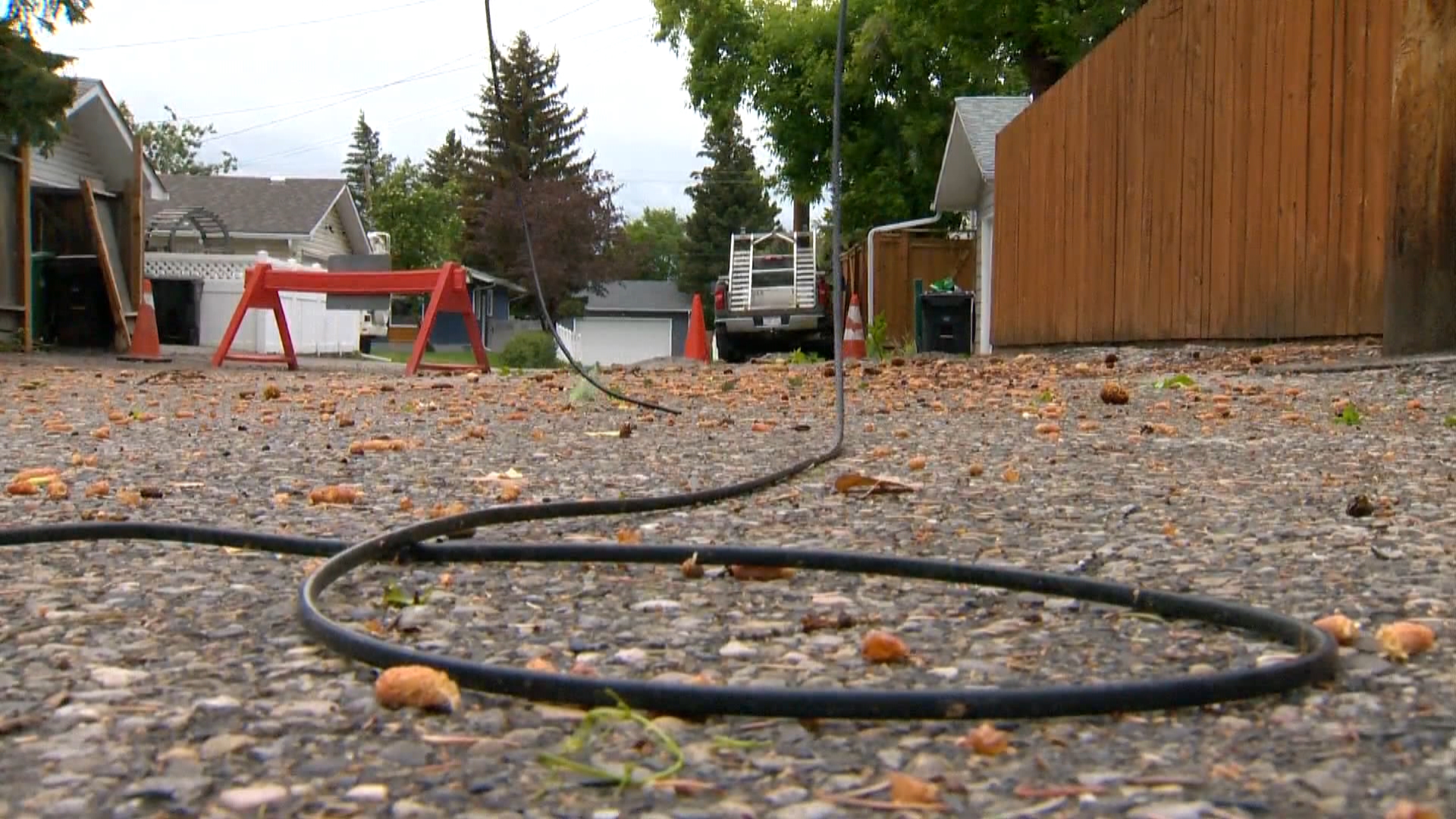 Enmax warns Calgarians to stay back at least 10 metres if they see a downed power line and report the outage to their website or by calling 403-514-6100. If the line is sparking or on the ground, call 911. If the power line is touching a tree, the utility warns not to remove branches or trees from wires as electricity can travel through any object touching the wire.