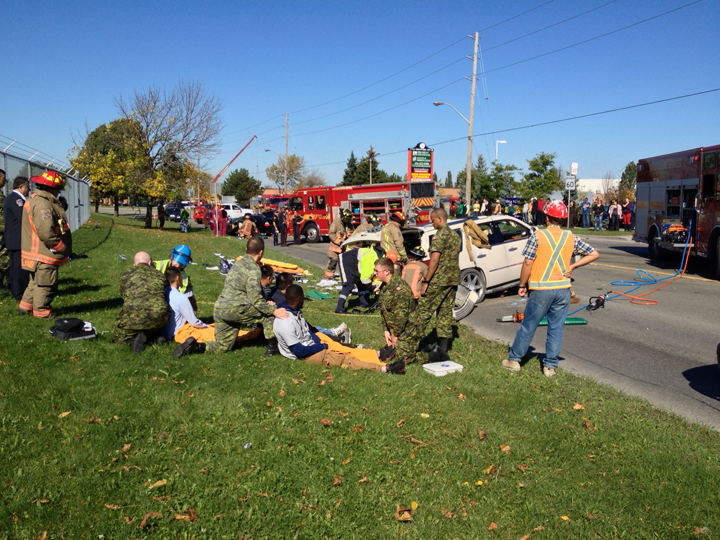 ABOVE: Soldiers rush to help victims of car accident near Downsview