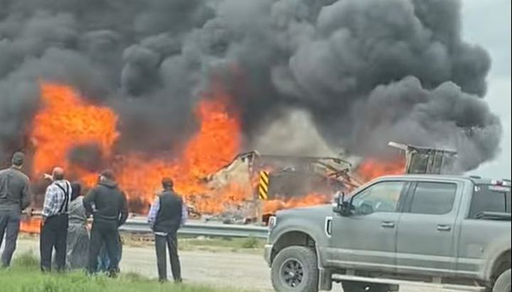 Two semi-trucks caught on fire after they were involved in a highway collision in southern Alberta on Thursday, according to police.