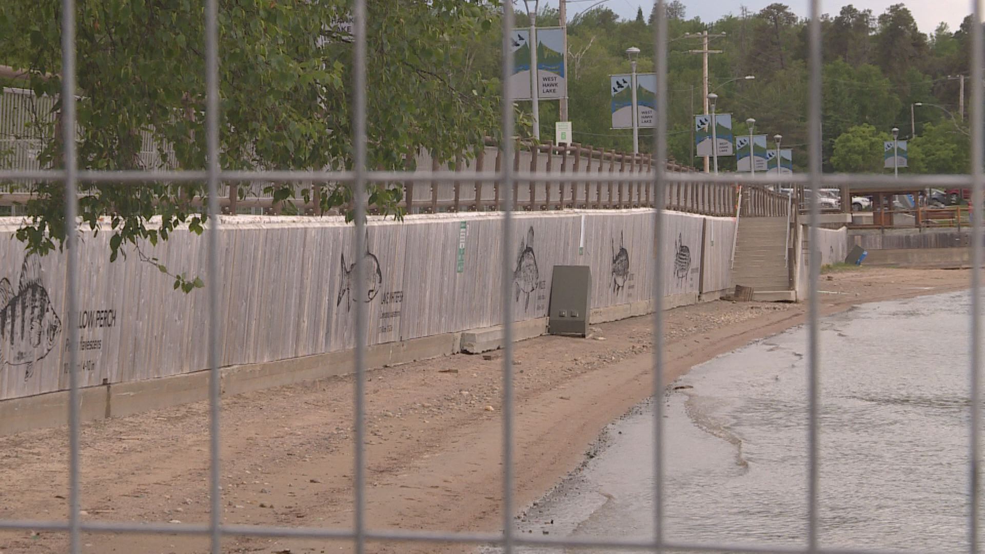 The province has closed off the main beach in West Hawk Lake following flood damage to the seawall behind the beach.