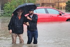 The Good Samaritan helped four other trapped drivers, most of whom were elderly and in need of assistance, and directed traffic to divert people from the river-like street.