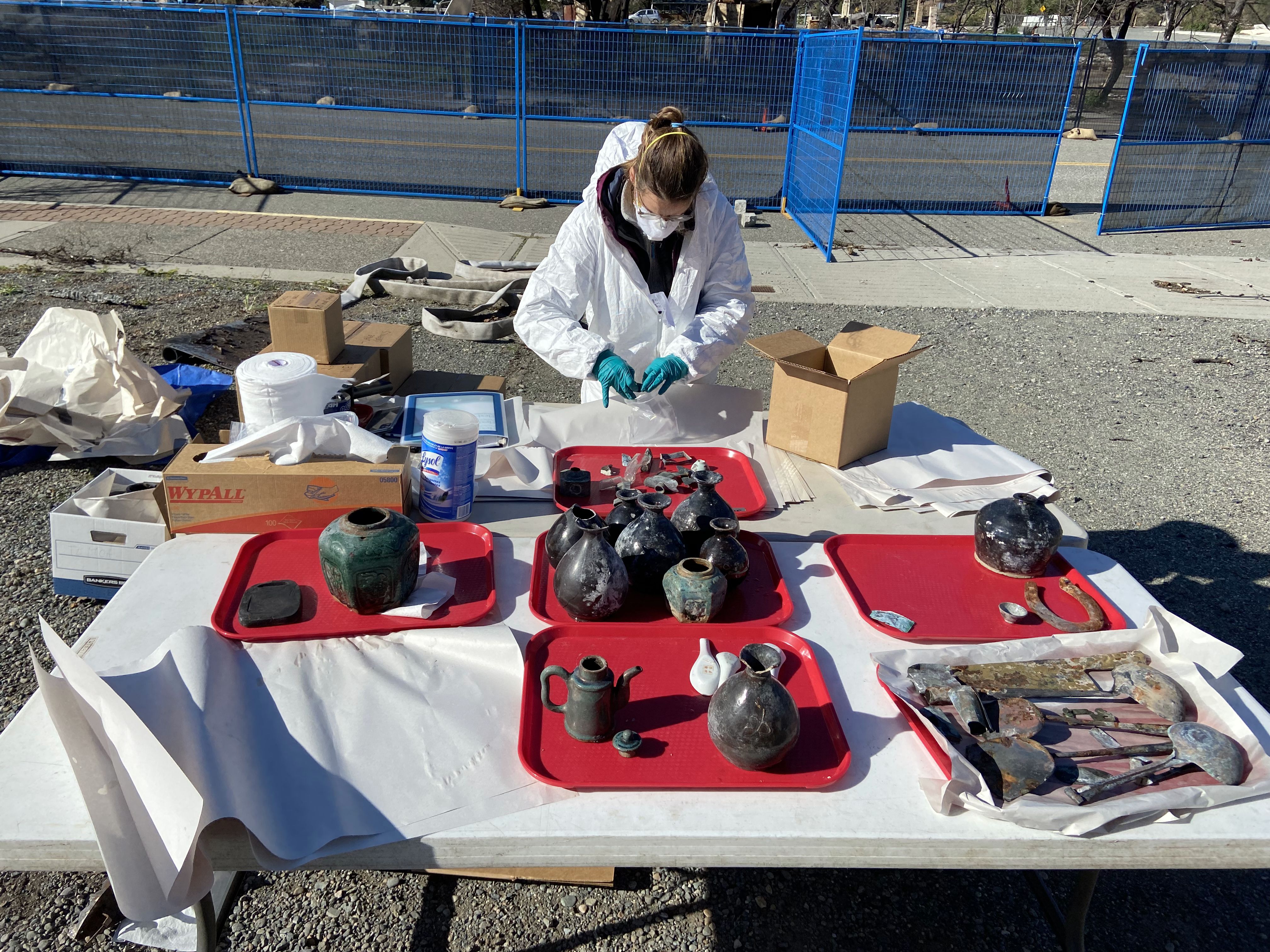 In fact, they did a lot of good, salvaging just under 400 pieces. They spent hours picking up broken objects, and carefully wiping them down. Bringing fresh water into the site to clean objects was a challenge.