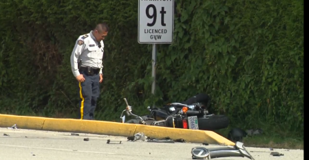 Images from the scene showed the damaged bike on the ground and a white SUV with front-end damage.