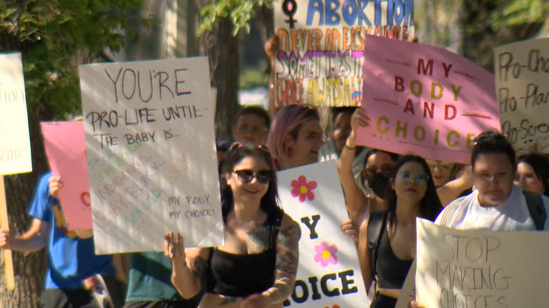 A few dozen impassioned protesters took to the grounds of the legislative building Tuesday afternoon in Regina, standing in solidarity with individuals in the U.S. who recently had their rights to abortion stripped away by the Supreme Court.