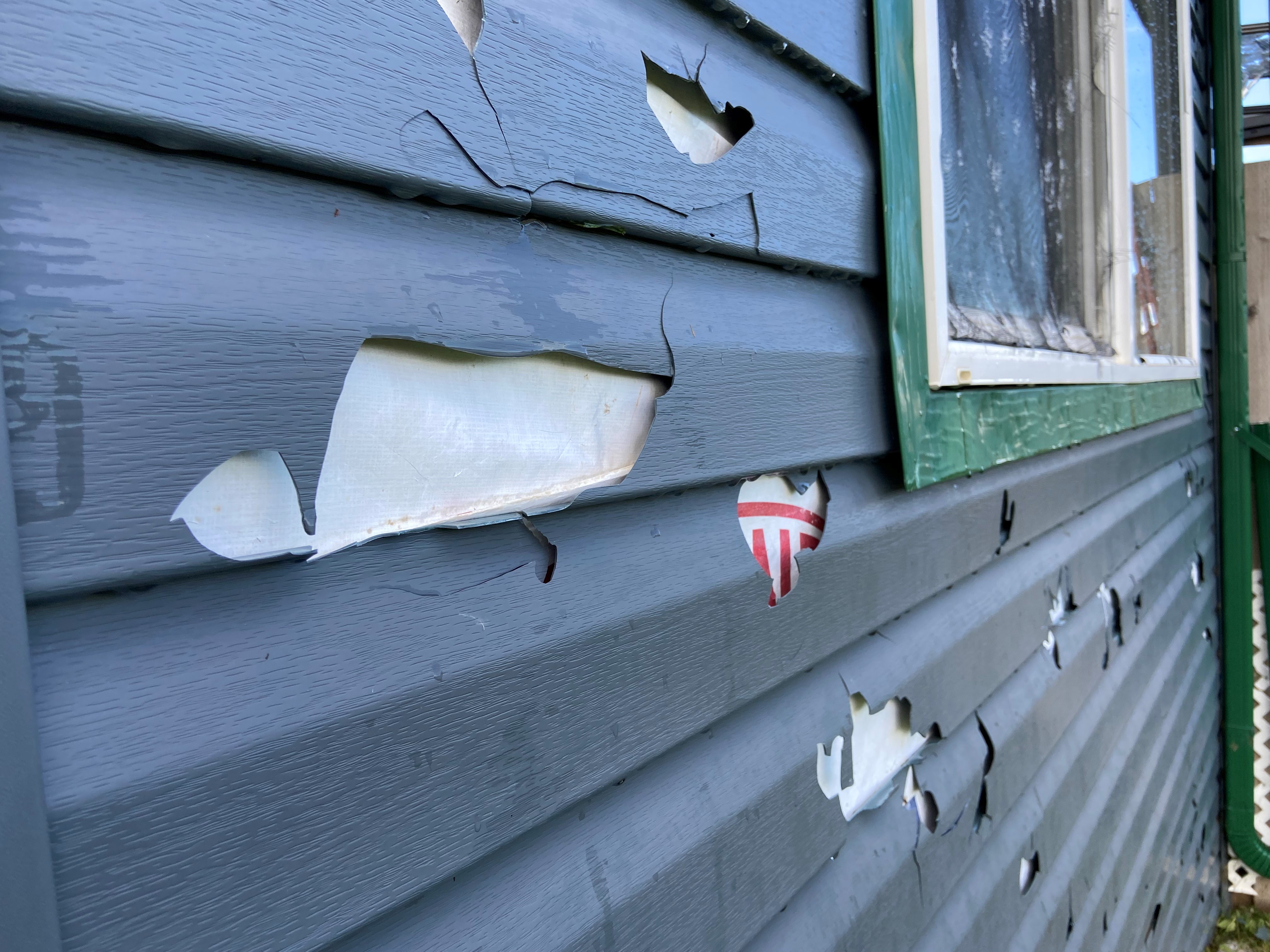 Hail shredded their yard, broke glass and the unforgiving force of it tore apart their awning.