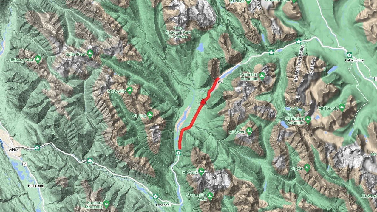 According to DriveBC, the highway was closed in both directions west of Field, from the west boundary of Yoho National Park to the visitor centre access road in Field, a distance of around 15 kilometres.