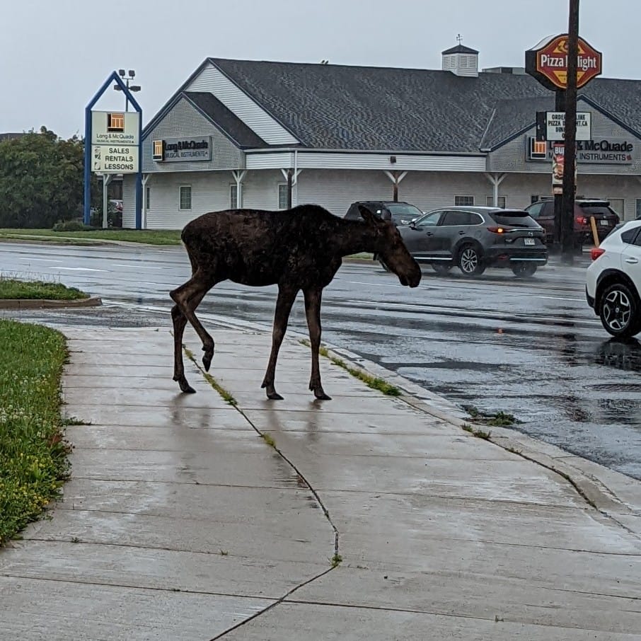 Several people captured images of the moose on the sidewalk, navigating traffic and make some stops at different businesses.