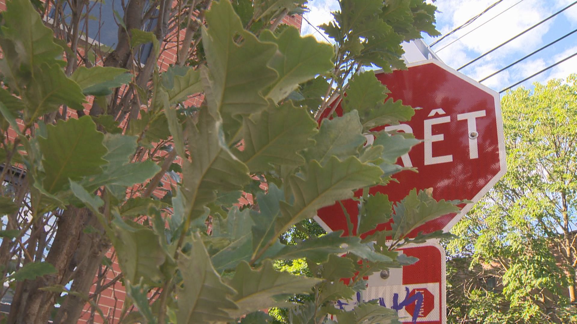 Workers planted a new oak sapling smack right in front of a stop sign on the corner of Ste-Émilie and St-Philippe streets.