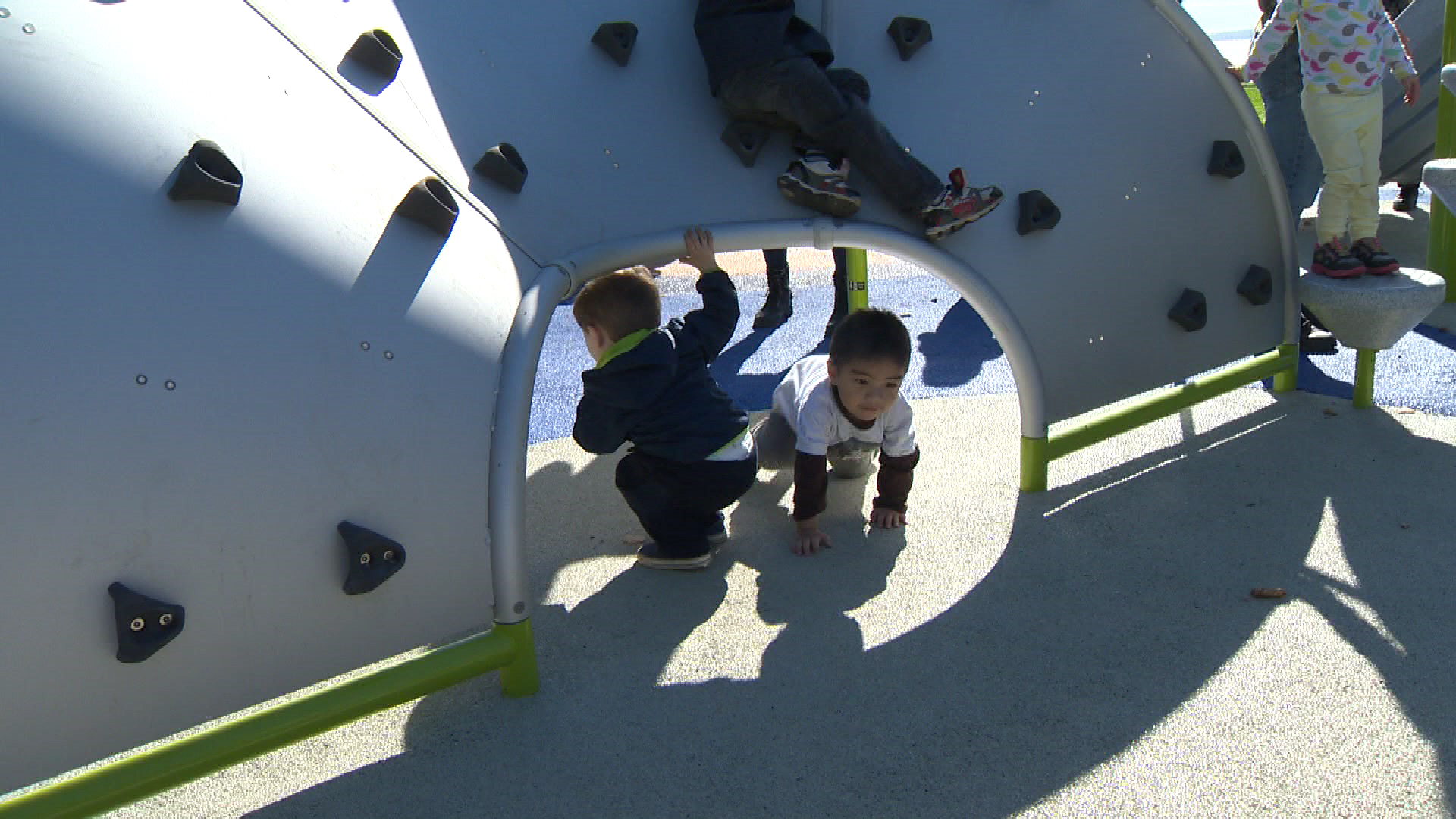 The playground itself is unique — the first of its kind in the country. Built with special cushioned ground cover for safety, the apparatus is entirely wheelchair accessible.
