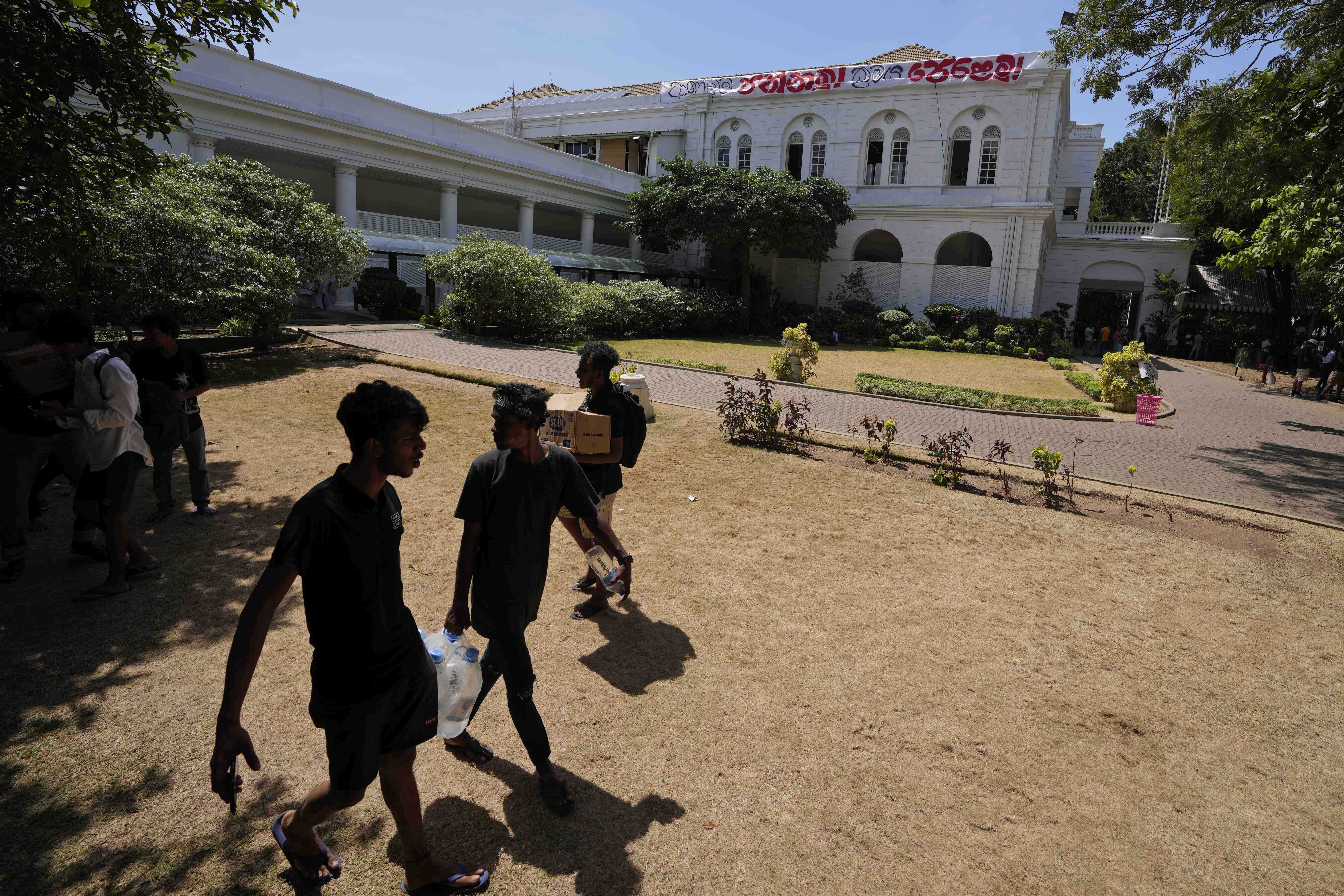 Protest leader Devinda Kodagode told The Associated Press they were vacating official buildings after the Parliament speaker said he was seeking legal options to consider since Rajapaksa left without submitting his resignation letter as promised.