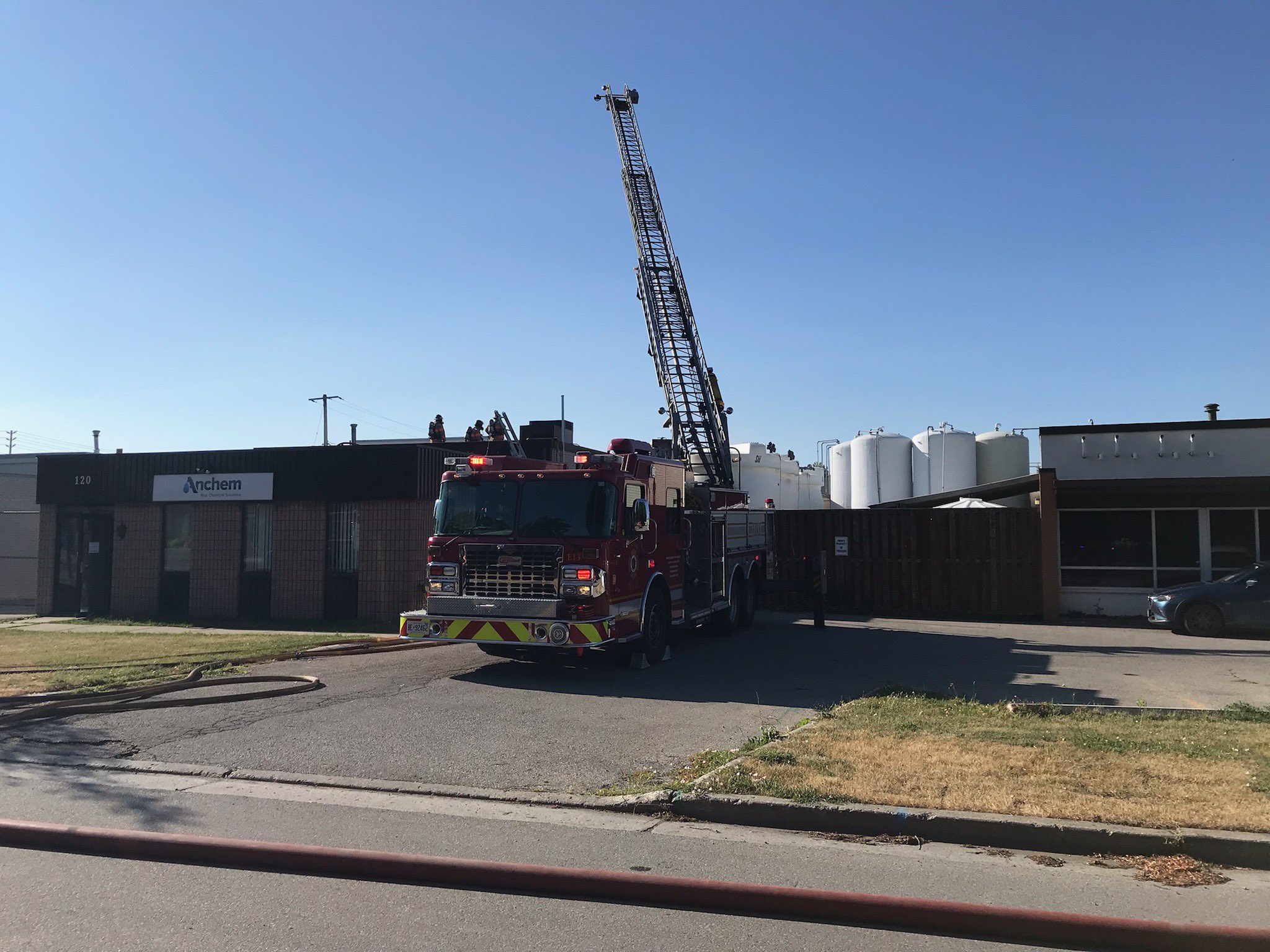 “There was a truck that was unloading hydrogen peroxide into the main pipe for the storage facility, and the valve was not turned on. So the pipe itself got over-pressurized and burst over top of the roof area,” said London Fire Department District Chief Jamie Britton. That caused a chemical reaction as the hydrogen peroxide spilled over the tar and gravel material on the roof, creating a plume a white smoke.