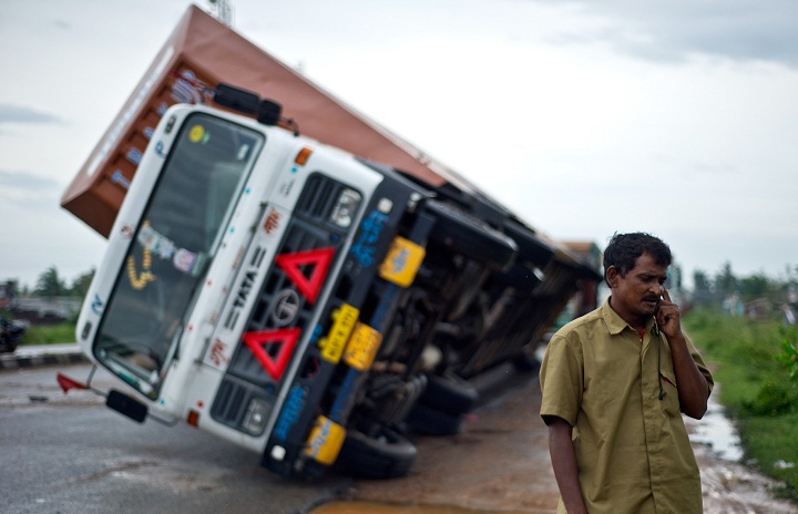 Truck driver M.D. Makasad Ali had set out Saturday night from the coast for Behrampur, but was forced by strong winds to pull over and shelter in his cab.
