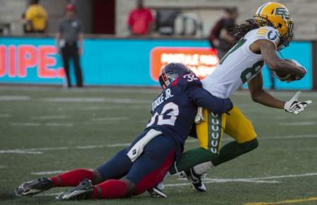 The Elks took advantage of two large pass interference calls by Alouettes defensive back Wesley Sutton. In total, the Alouettes (1-4) accumulated 193 penalty yards during the game.