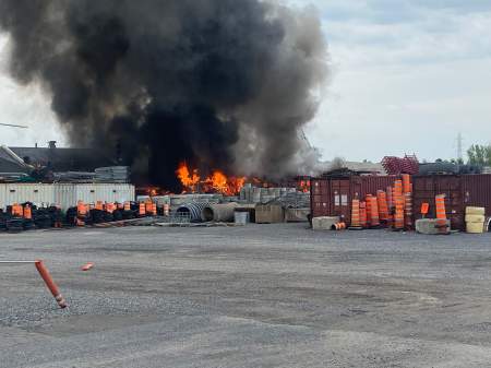 According to Longueuil fire Chief Stefan Difruscia, the fire began at 10:45 a.m. Monday at an asphalt factory at 3500 Sir Wilfrid Laurier Blvd.