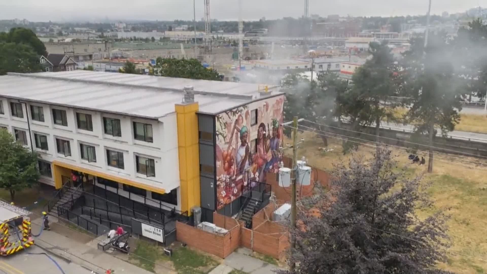 Multiple people have been displaced by a fire in a temporary modular housing on the edge of Vancouver’s Chinatown.
