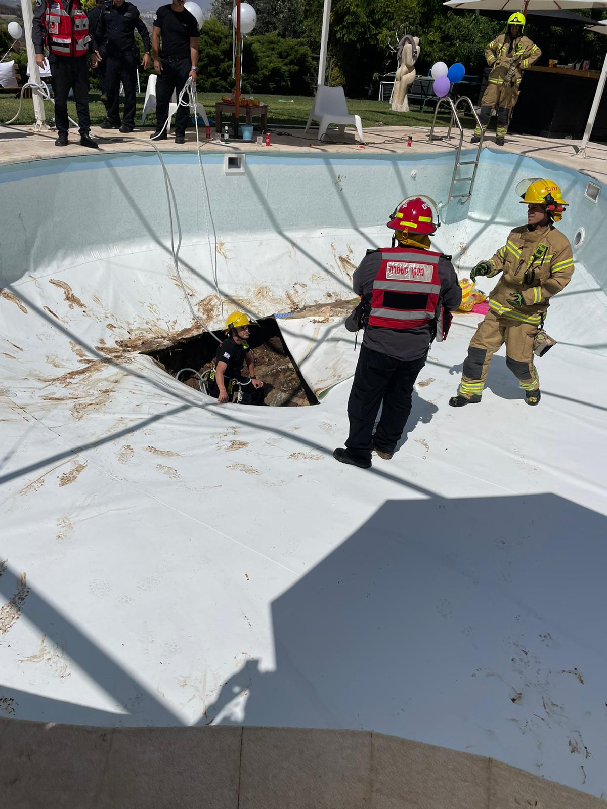 One man is dead after a large sinkhole opened under an in-ground swimming pool at a house party in Israel on Thursday.