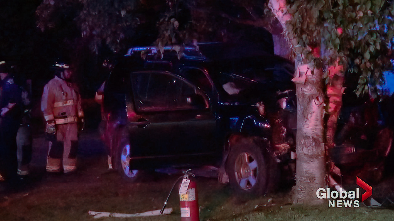 Around 9:30 p.m., emergency crews responded to reports of a SUV that had struck a tree on the lawn of a residence on Southlawn Drive.