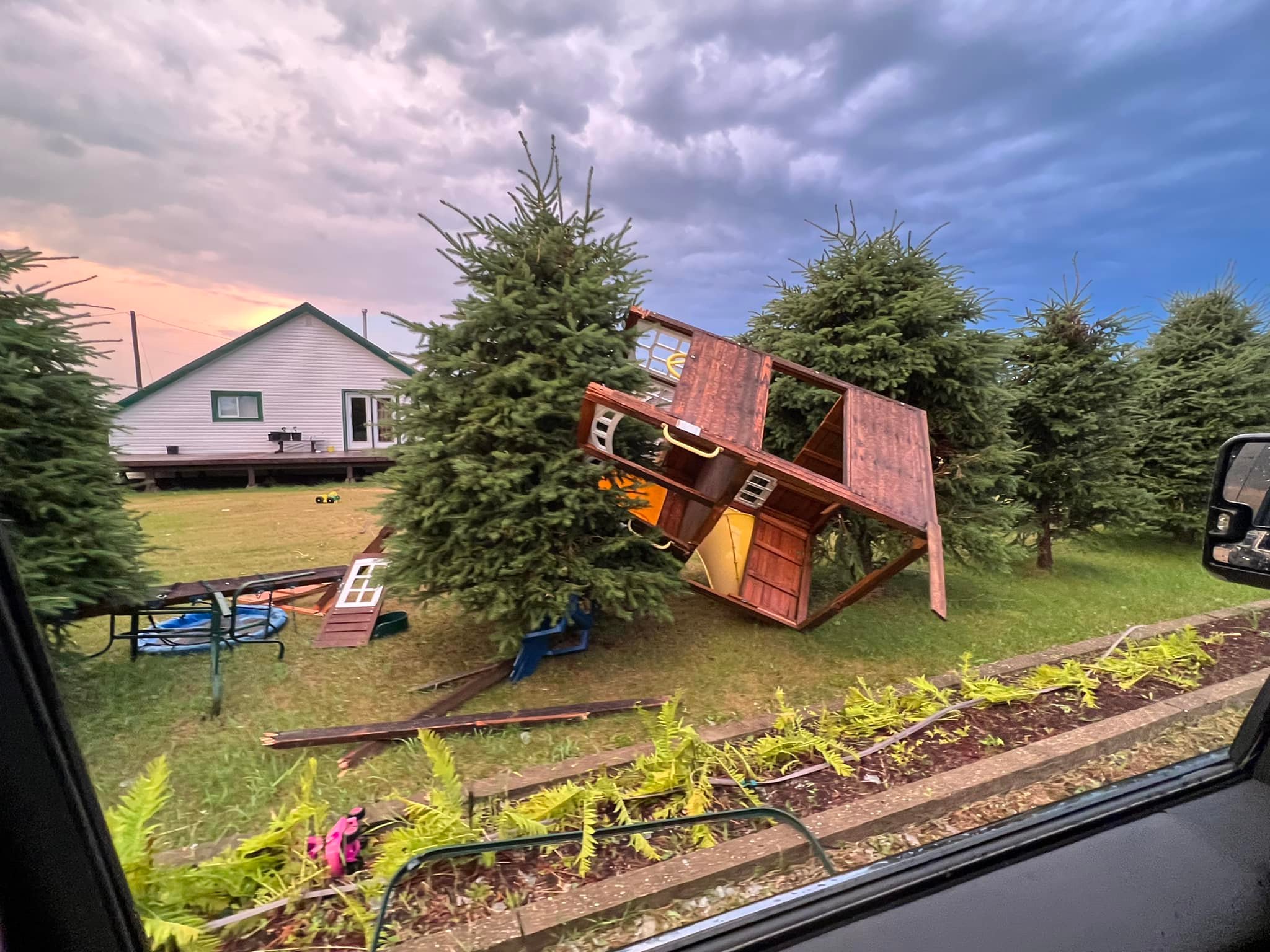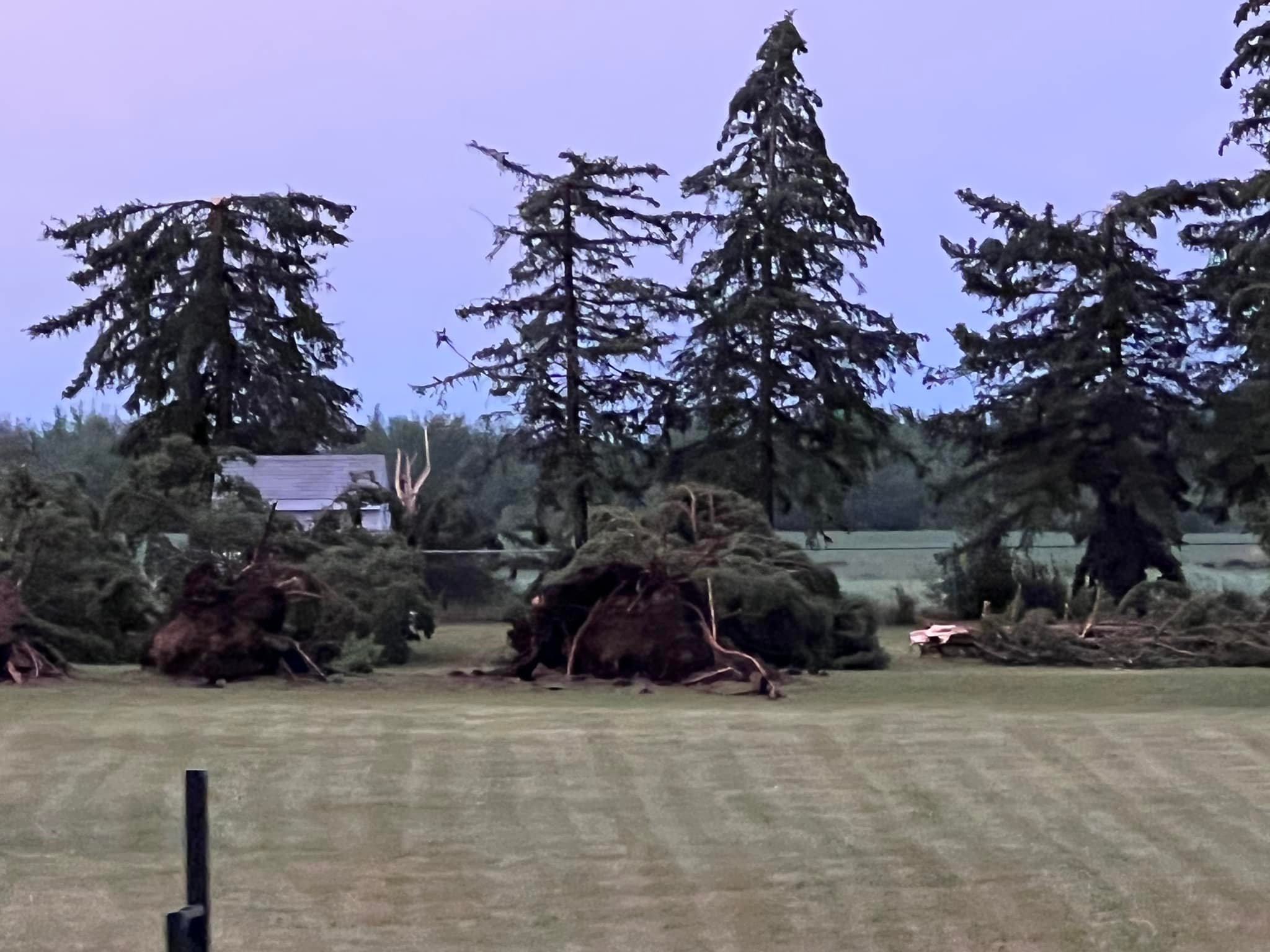 There were reports of uprooted trees landing on houses and blocking the road. Sheds were blown over, shingles were missing from properties and in some areas, the power was knocked out.