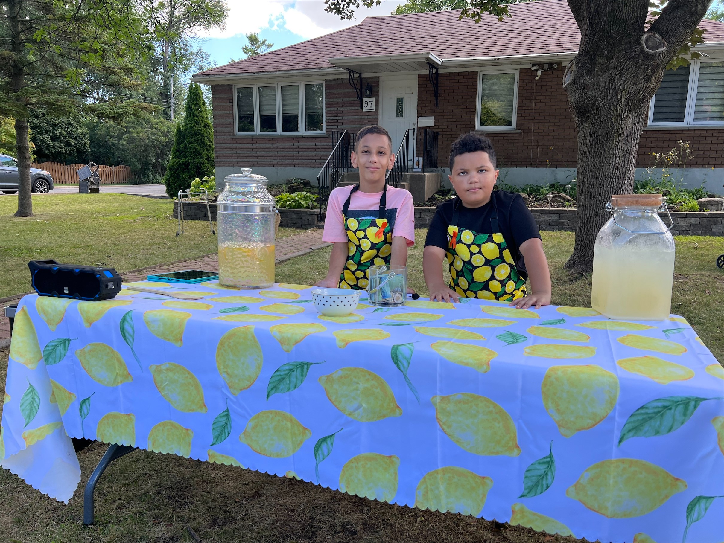 Neighbours dropped by to show the boys support on Sunday as they sold lemonade without their megaphone.