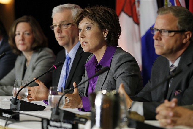 Clark and Redford are scheduled to publicly discuss the progress of the joint energy plan on Nov. 5 in Vancouver following the Alberta premier’s address to the city’s Board of Trade. A final report is due on Dec. 31.
