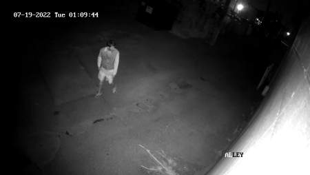 On Monday, police released surveillance footage from July 19 showing a man of average height, with a thin build, short hair and facial hair writing on a wall in an alley.