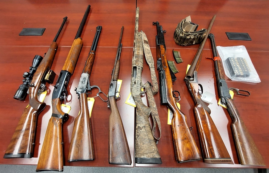 Police say they seized eight firearms and a utility trailer that was stolen from the Gananoque area, valued at approximately $20,000.