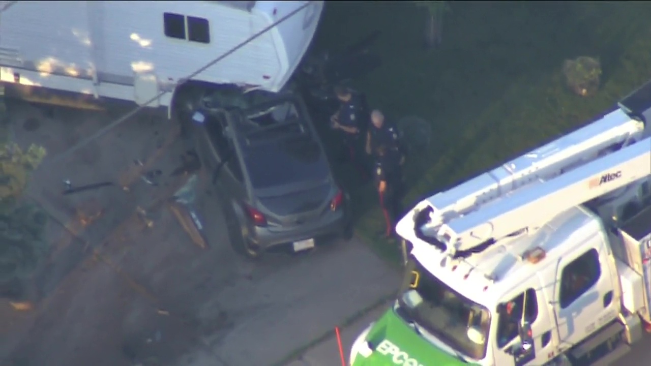 Police said the vehicle struck a power pole.